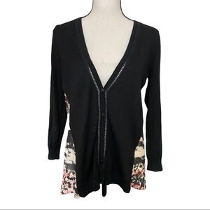 Anthropologie Cluny cardigan with silk shirt back and geometric design 53%silk 47% cotton/ long sleeve size X-Small.