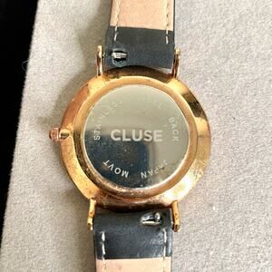 Cluse Minuit Womens Black Rose Gold Tone Leather Strap Watch