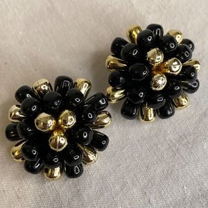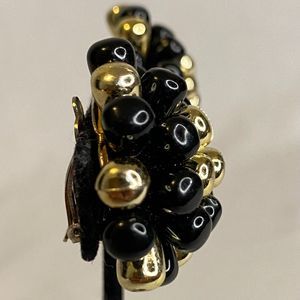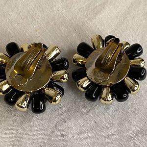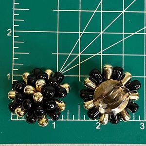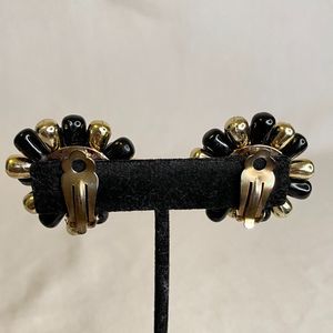 Cluster Earrings Black And Gold Bursts Clip Ons Lightweight