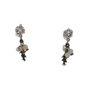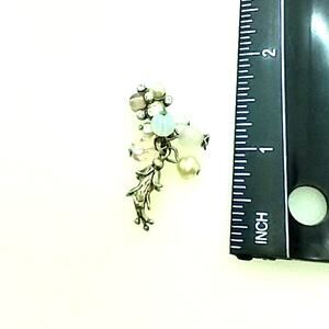 Cluster Earrings White and Peach Beads Pewter Flower Rhinestones Pewter Tone