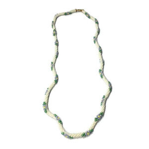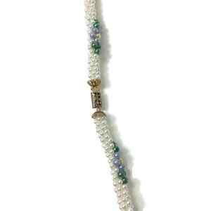 Twisted Faux Pearl White Blue Rope Necklace...measures about 38" in length.