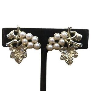 Cluster Pearl Maple Leaf Gold Tone Clip On Earrings Vintage Costume Jewelry