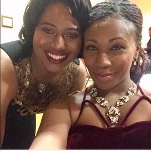 Dazzle in elegance with this timeless necklace. Multi-colored with black, pink, clear faux rhinestones and gold tone trim. Adjustable with a classic lobster claw hook closure. Large cluster is 2” and smaller ones are 1 1/2” long.