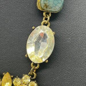 Cluster Rhinestone Stones Statement Bib Necklace Gold Tone 18 to 21 Inches