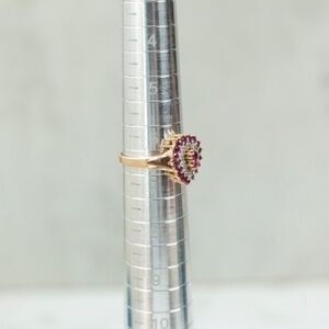 Cluster Tear Drop Ruby and Diamond Gold, 14K Size 7 Yellow Vintage Gold Ring