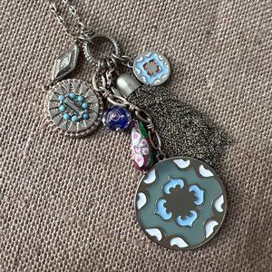 Cluster pendant gold tone long lanyard necklace floral pear tassel circle charm