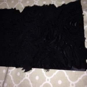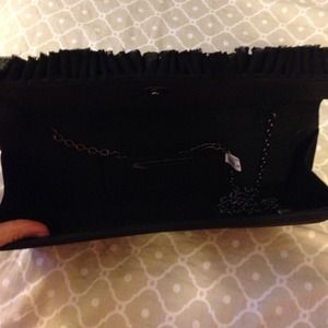 Black clutch with flower print on the front. Has a chain to use as a shoulder bag. Gently used