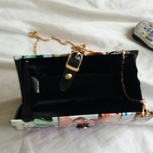 Super hip clutch with gold chain. Covers of magazines of vogue Prada and more! I also have matching shoes.