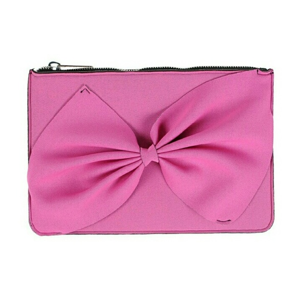 Neoprene, solid colour, bow detailing, zip closure, medium, clutch bags. Textile fibres. Color: Fuchsia. Washable