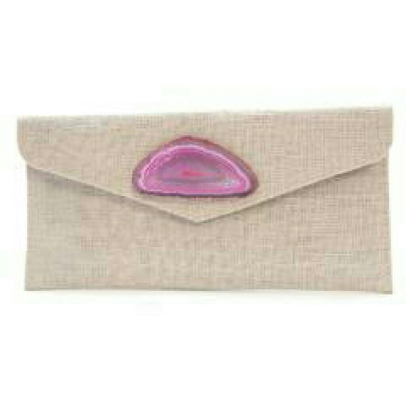 Jute agate stone envelope clutch.