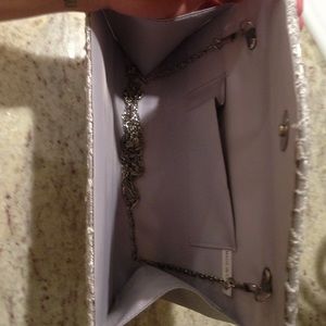 Satin silver clutch with chain to carry on shoulder (optional) brand new never used