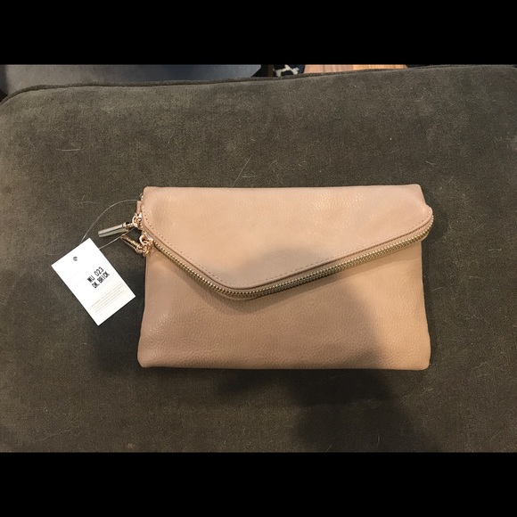 Cute medium brown clutch, rose gold metal, never used, new with tags, no brand, quality material. Comes with chain to create a shoulder bag, or a wrist strap. Zipper pocket and fold-over snap. Very cute!!! Please reach out with any questions! Happy poshing! ✨