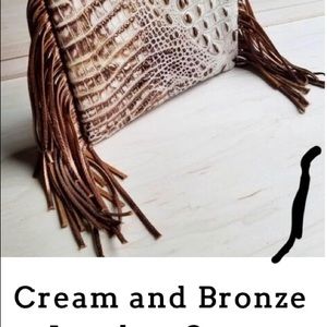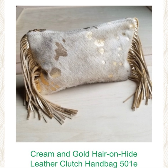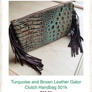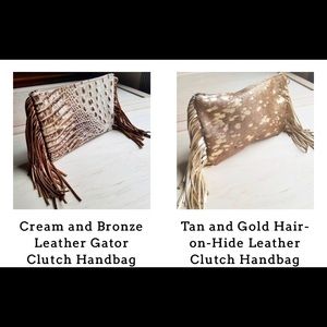 Leather clutch zip top fringe sides with wrist loop