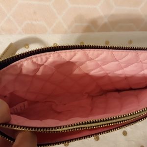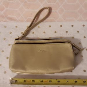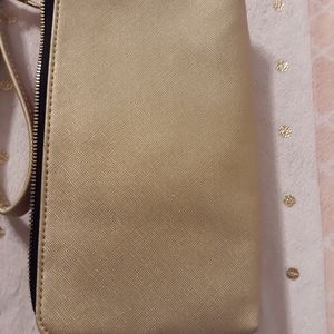 Gold Scout clutch with pink fabric lining. Used once. Lots of compartments and space for the essentials.