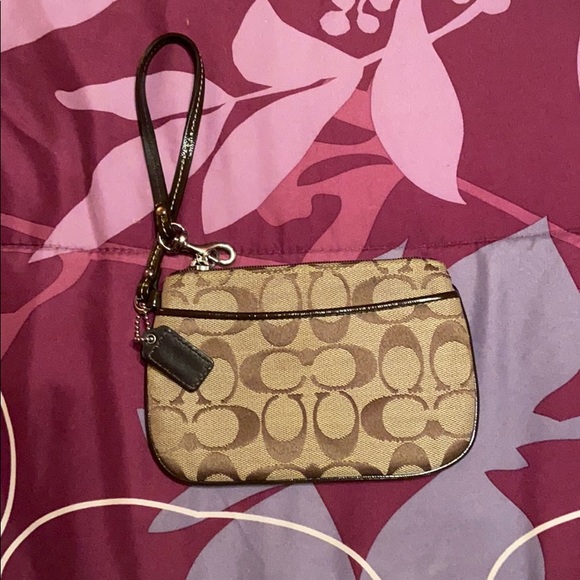 Signature brown wristlet zipper and outside pocket barely been used, good condition.