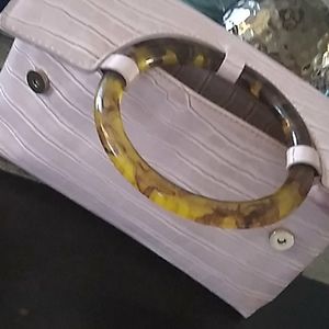 Blush pink clutch , beautiful handle.... zipper pocket on back ..