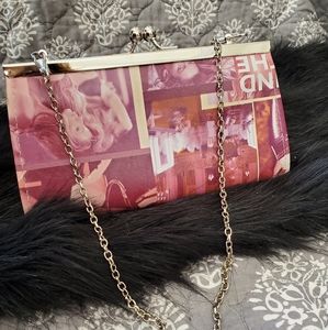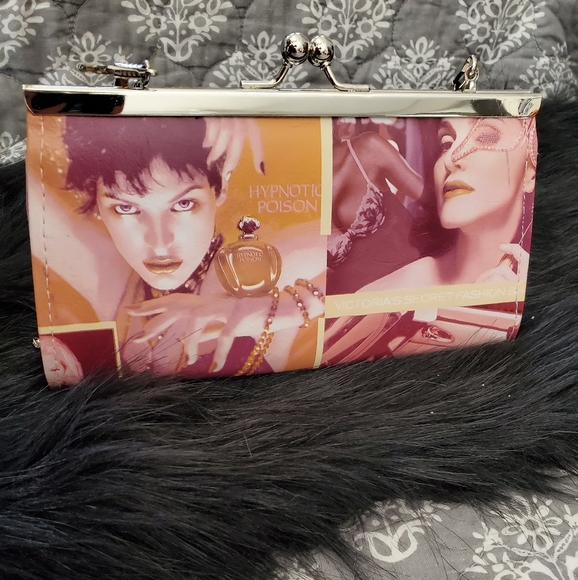 Cute noname brand clutch it does have Victoria's secret written on it but I don't think it's Victoria's secret it has different pictures of models or singers like Madonna on it really cute gently gently used.