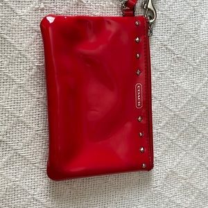 Reddish orange small coach clutch in fair condition