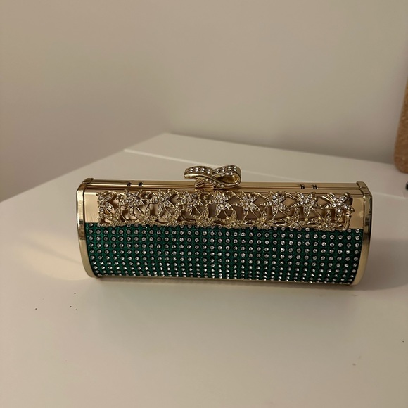 New Green and gold clutch comes with chain strap and handle perfect for weddings - Make any offer and I will accept it