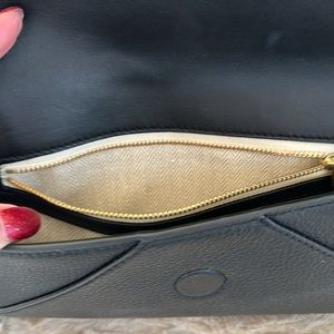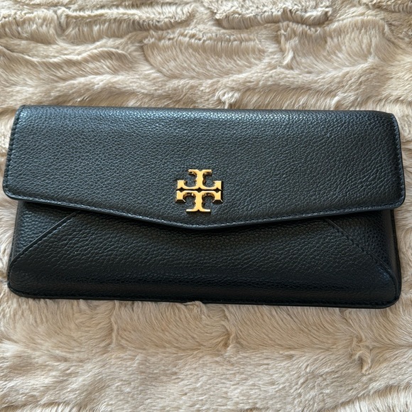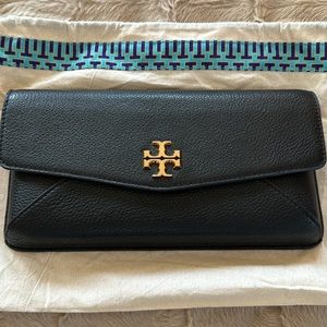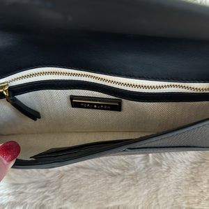Tory Burch black lather clutch. Zipper pocket inside . Clutch is like brand new!! Great condition!!