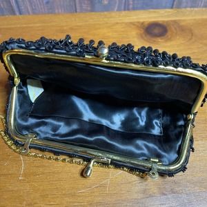 Clutch Bag Black Beaded Evening Clutch Made Hong Kong MCM Kiss Lock Gold Chain