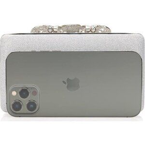 Measures: L7.1 * H4 * W2.4inches.The velvet clutch bag just fit Iphone 14 plus (without case), the rounded square shape fits comfortably in the palm of your hand.