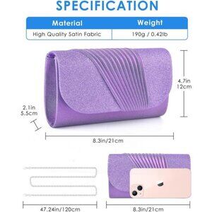 3-in-1 STYLE - Coming with silver removable shoulder chain. Evening bag / Crossbody bag / Shoulder bag, which can be clutched by hands or hung on shoulders with the detachable chain. ENOUGH SPACE - 8.66*4.72*2.16inch, The handbags are roomy enough for most needed items, such as makeup brushes and lip sticks, feminine hygiene products, mobile phones, cards, money, car keys, small wallet and so on. OCCASION - The Clutch Purses for women are perfect choice for wedding Birthday, Homecoming, night out, prom, party and cocktail, bridal, or formal event. This tall evening envelope style clutch will make you glow during your special occasion. GREAT GIFT IDEA - clutch purse are great gifts for women of any age, which can match with any type of formal or casual outfit perfectly, not only serve the purpose of a fashion accessory, but also a useful bag to keep a small amount of items well organized.