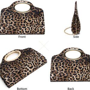 Material: Made of High quality leopard print PU leather with fabric lining and features with polished gold-tone cut-out handle and chic chain strap.High-quality leopard print clutch purse with an Elegent appearance and simple design are perfect for any occasion, whether it's a family reunion, party, dance party, wedding, birthday, banquet, or any other celebration.Besides, two magnetic snaps inside to ensure that items do not fall out.