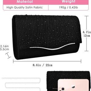 UNIQUE DESIGN - Front flap with magnetic button closure. Made of high quality satin fabric and decorated with clear rhinestone overlay, sparkly glitter rhinestones in varied sizes on flap.