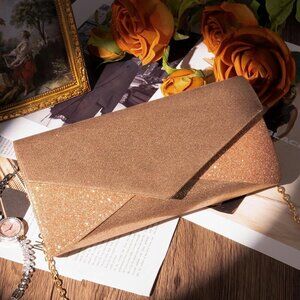 Stunning Design: The evening bag features a unique envelope silhouette crafted from glossy leather and sparkling sequins, combining elegance and glamour for a standout look at any event