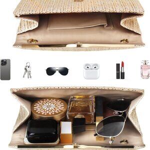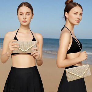 Natural Craftsmanship: Woven from premium raffia and polyester fiber, this straw evening bag features a lightweight body and built-in non-slip lining. The elegant herringbone pattern creates a sophisticated summer-ready look