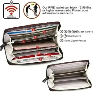 Dimension: 8.2'' x 4.72'' x 0.98'', fit in your pocket or hand bag perfectly. RFID BLOCKING & PROTECTION and protects you cards the valuable private information.