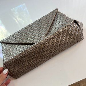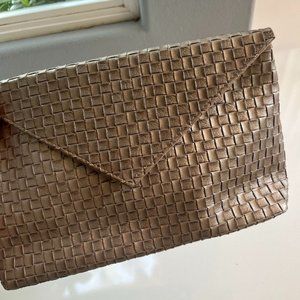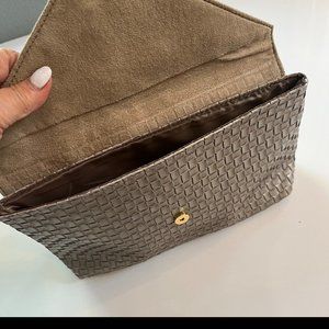 This is a Lined bronze woven matching clutch and passport case.
