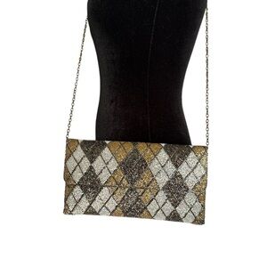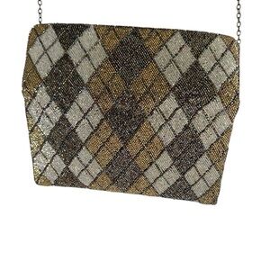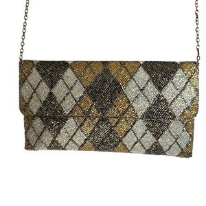Ricki designs beaded clutch evening bag Neutral colors Argyle pattern New Without Tag