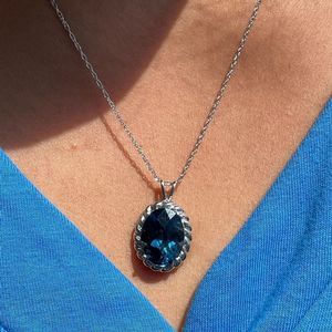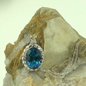 Signed CID. Stunningly beautiful oval clawed faceted oval cut London blue topaz pendant set in solid 10K white gold & 14K White Gold twisted Rope Chain. necklace in solid 14KT yellow & white gold. Stamped: MS CO 14KT & CID 10K. Tested real 14K & 10K Gold. No cracks, no chips on metal & Stone. No broken parts. Great for any occasions, casual wear. Like NEW.