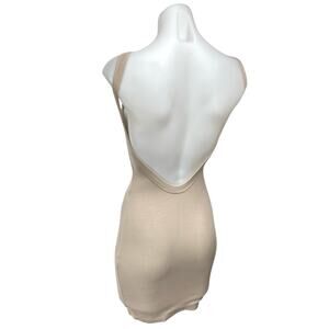 Clyque Women's Beige Rib Knit Sleeveless Backless Cami Camisole Mini Bodycon Tank Dress Size XS
