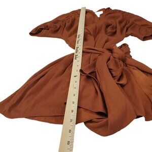 C/meo Collective Womens Mini Dress Cognac Copper Eminence Tie Waist Draped Flowy Short Sleeve