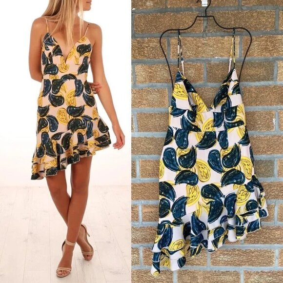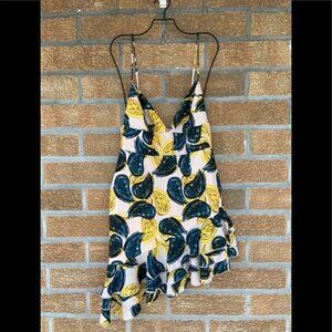 The Temptation Mini Dress is a gorgeous fitted mini in a blush paisley print perfect for the summer days. Cuts from a soft mid-weight woven fabric. Featuring a shaped hemline with layered ruffle and adjustable shoulder straps. Fully lined. Concealed back zip closure