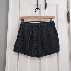 EUC Like New Co + Co by Coco Rocha Cadenza high rise / high waisted lined mesh shorts in black. Shorts feature an elastic waist, front side slash pockets, mesh overlay, piped trim and a track short style fit. Coco Rochas clothing line is sporty contemporary line that's a mashup of athleisure and streetwear with clean lines and tailored fits. These gym to street shorts are perfect to wear with a crop top.