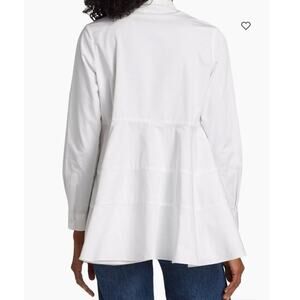 Co Essentials Cotton Peplum Button Down Shirt White Lagenlook Womens Size XS