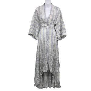 Co High Low Dress L Stripe V-Neck Short Sleeve Pocket Linen Blend Relaxed Maxi