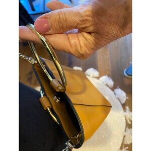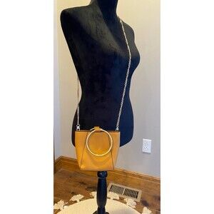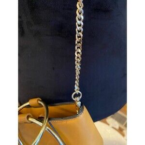 Co Lab by Christopher Kon Bangle Tan with Gold Handles Strap Tote Bucket Vegan Unique purse with Chain Strap and Designer Look