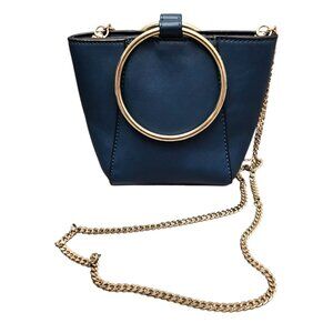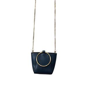 Co Lab Christopher Kon Bucket Bangle Vegan Teal Gold Heavy Chain Crossbody Bag Small
