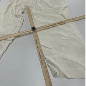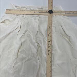 White viscose (100% Viscose). Pants. Front zipper fly with button closure. 29" inseam. 13.5" rise. Imported.
