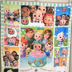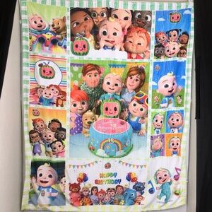 CoComelon Plush Fleece Throw Blanket Happy Birthday Graphic Friends Background