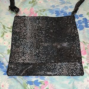 Great condition two small spots on strap where pattern is missing but not very noticeable. Maybe a couple spots on front where it rubbed off. Gorgeous sparkly bag. Crossbody or remove the strap and it’s a foldover clutch.