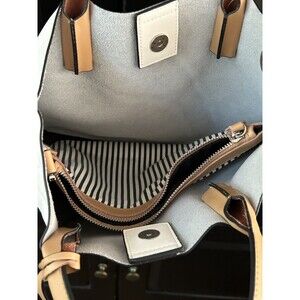 CoLab Handbag Tote 100% Leather White Tan Tassel Purse Preppy Traditional