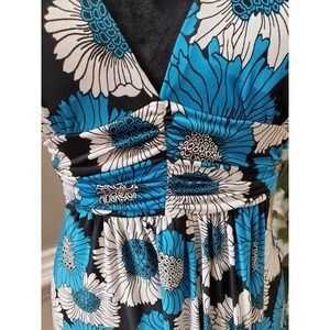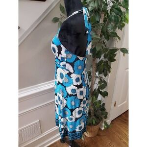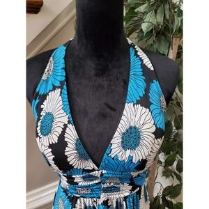 Co-Me Como Blue Multicolor Floral Halter Neck Sleeveless Knee Length Dress M