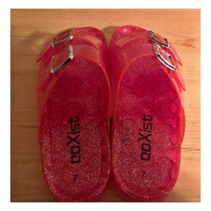 CoXist adorable pink sparkly jelly sandals with double buckle straps. Never worn!