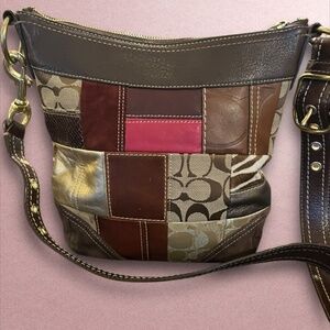 Coach 10435 Patchwork Crossbody Bag Brown Suede Leather Canvas Y2K Vintage